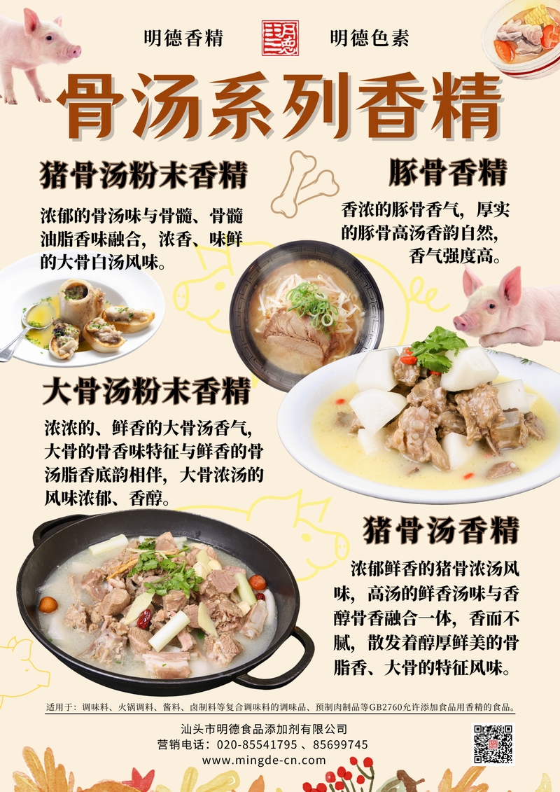 打造濃郁湯底的關(guān)鍵風味解決方案——明德骨湯系列香精,為工廠產(chǎn)品加“骨”提鮮隨著高湯類產(chǎn)品在調(diào)味品、預制菜、湯包等領域的快速發(fā)展,消費者對“湯味還原度”和“骨香真實感”提出更高要求。